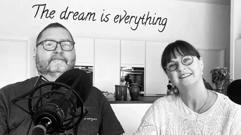 Medvirkende i podcasten er blandt andre Martin og Sanni Larsen, der har været gift i 28 år. I oktober 2023 blev Martin, som 57-årig, diagnosticeret med en højgradshjernetumor, et glioblastom. ”Det er som om, at kræften æder noget hver dag. Der er hele tiden tilbagegang at spore, men vi prøver stadig at finde ud af hver dag, hvad der kan gøre os glade i dag. Hvad kan vi gøre i dag, for at det her bliver en god dag? fortæller Martin. Foto: Hjernetumorforeningen