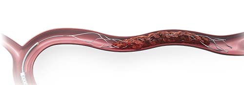 Ved trombektomi fjerner lægerne en blodprop fra blodkar i hjernen via kateter. - Illustration: Stryker