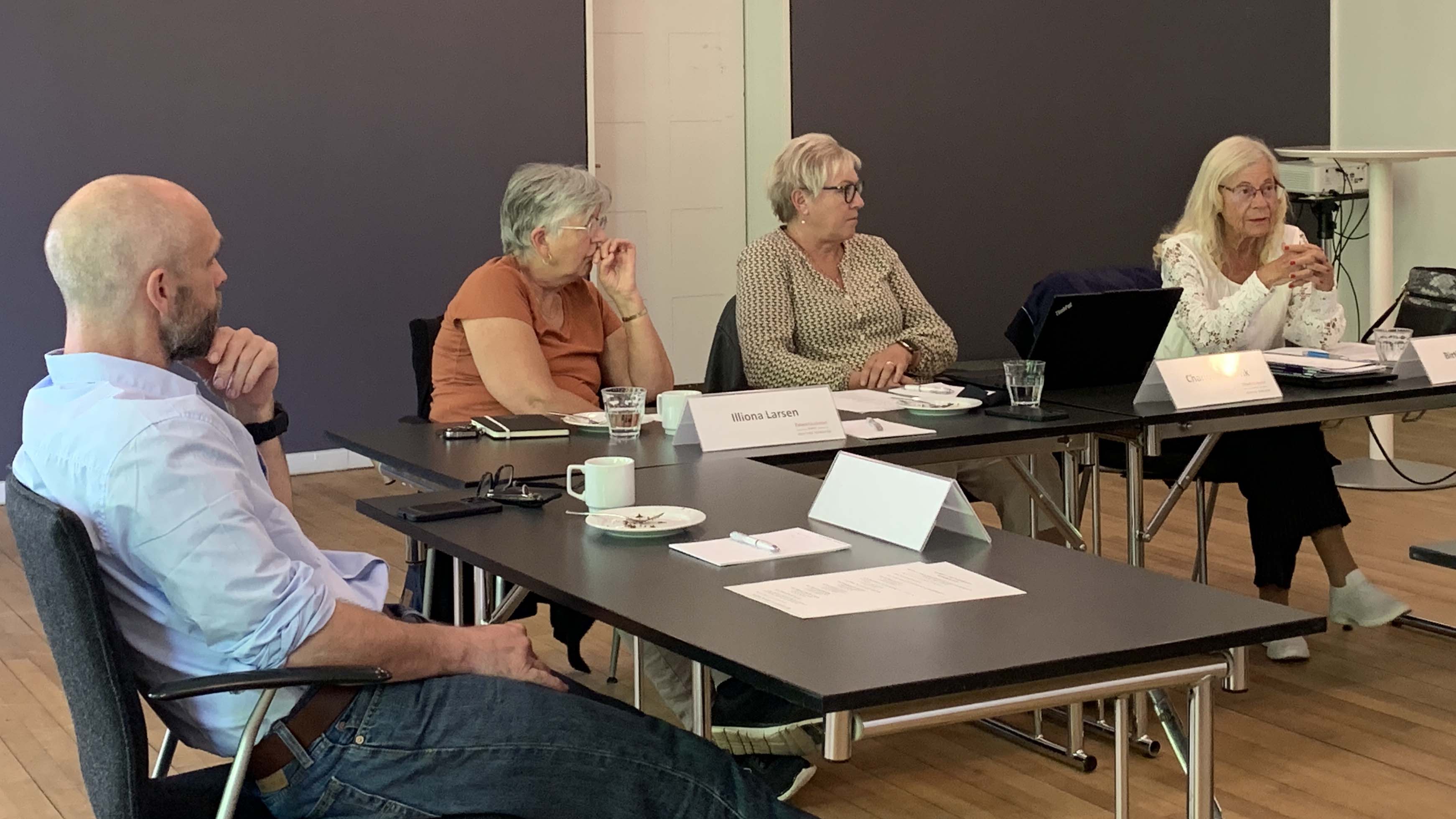 KIU, patientforeningen for kræft i underlivet, repræsenterer fem forskellige sygdomme, og derfor var der tre repræsentanter med fra foreningen, der kunne fortælle om hver sin sygdom. Fra venstre: Mikkel Rosendahl, der er overlæge på Onkogynækologi på Rigshospitalet og formand for Dansk Gynækologisk Cancer Gruppe. Og derefter de tre kvinder fra KIU; Ilona Larsen, Charlotte Dybvik og Birthe Lemley. Med på et link var Lene Seibæk, der er professor i sygepleje, og ansat som seniorforsker i Kvindesygdomme og Fødsler på Aarhus Universitetshospital.
